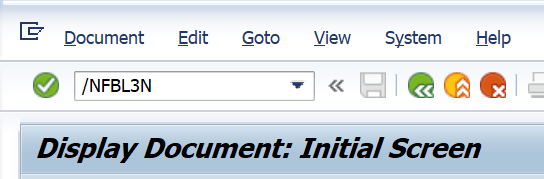 From transaction code FB03, type in /NFBL3N in the Transaction Code box and press the Enter button on your keyboard.