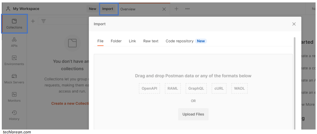 Click on Import and select the postman collection file/s provided by the developer.